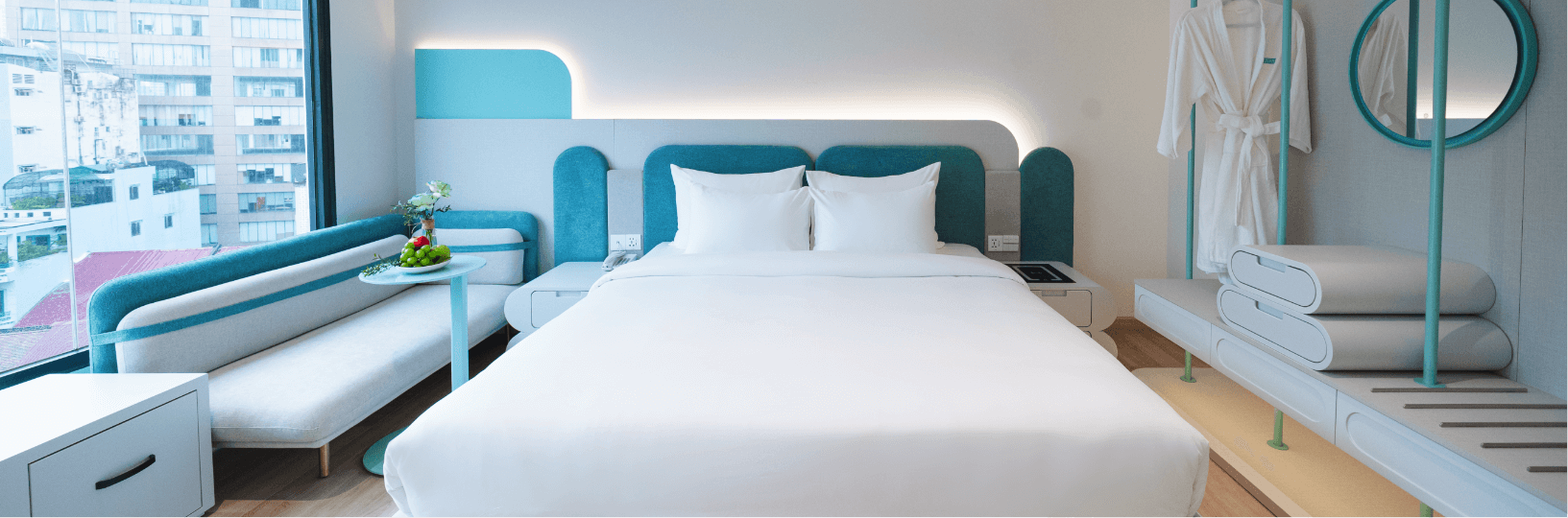Our flagship, Icon Saigon Hotel, is designed for today’s globetrotters: stylish, curious, and always on the move. Set in the heart of Ho Chi Minh City, the hotel blends contemporary comfort with modern Vietnamese design, offering a refined yet relaxed atmosphere that feels distinctly local and refreshingly international.