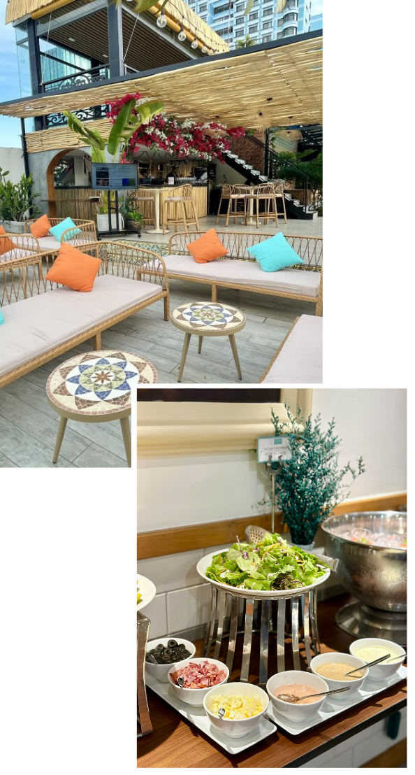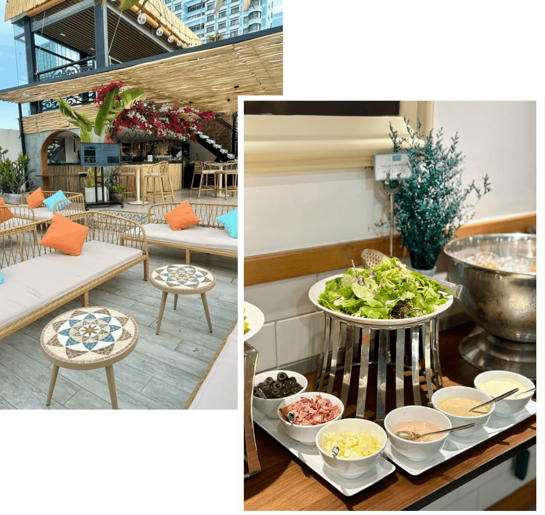 Located in the heart of District 1, SolLuna is the perfect escape — whether you're unwinding after a long day or simply spending a laid-back afternoon by the serene blue pool. Its open rooftop space offers panoramic views of the city and mesmerizing sunsets, creating a truly chill experience from sunrise to city lights. With a menu of enticing light bites, refreshing cocktails, and personalized service, SolLuna sets the scene for every occasion — from romantic dates and poolside parties to private gatherings with a view.