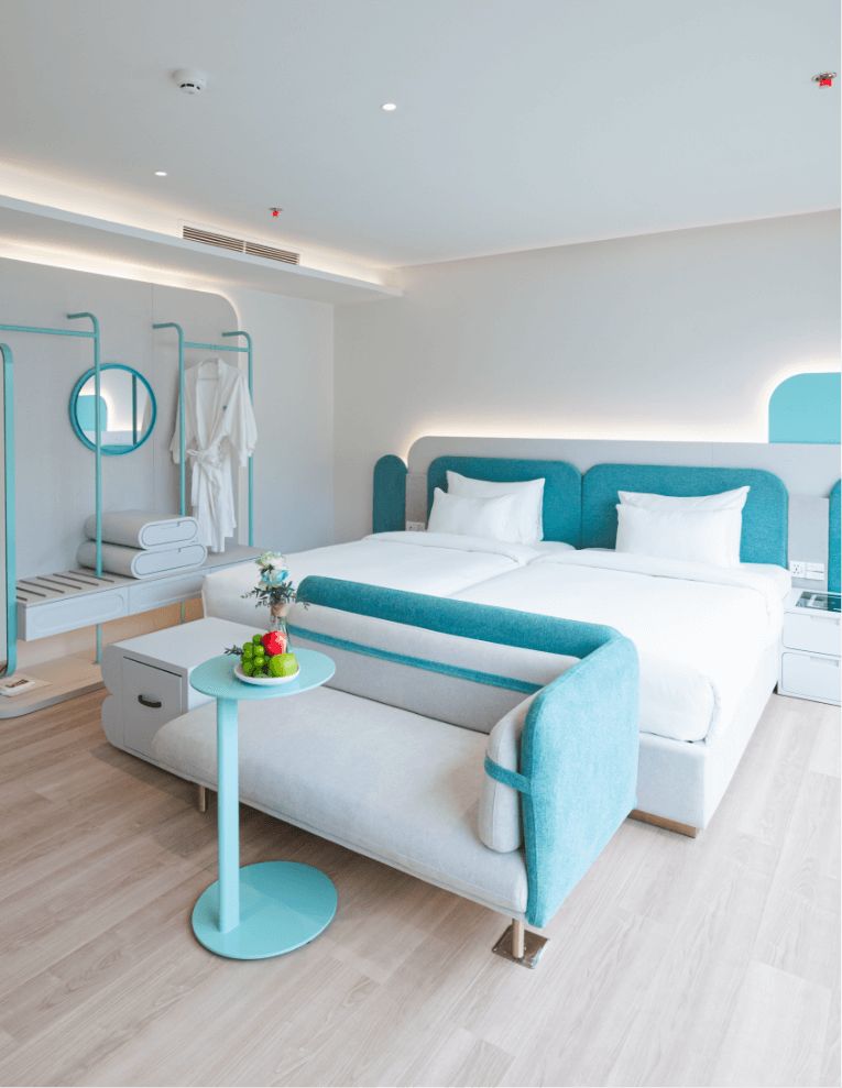 Our most spacious and elevated offering, featuring a private balcony, more living space, and refined comforts.